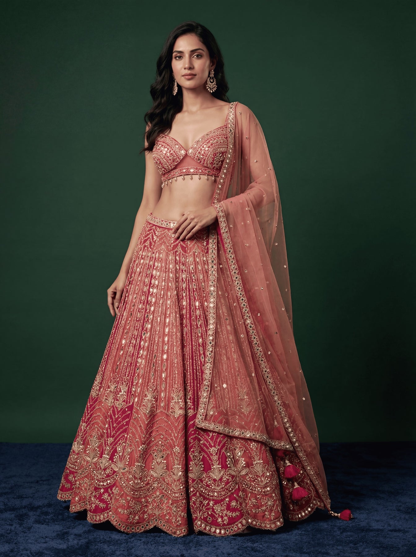 • Multicolor Sequinned Net Designer Lehenga
