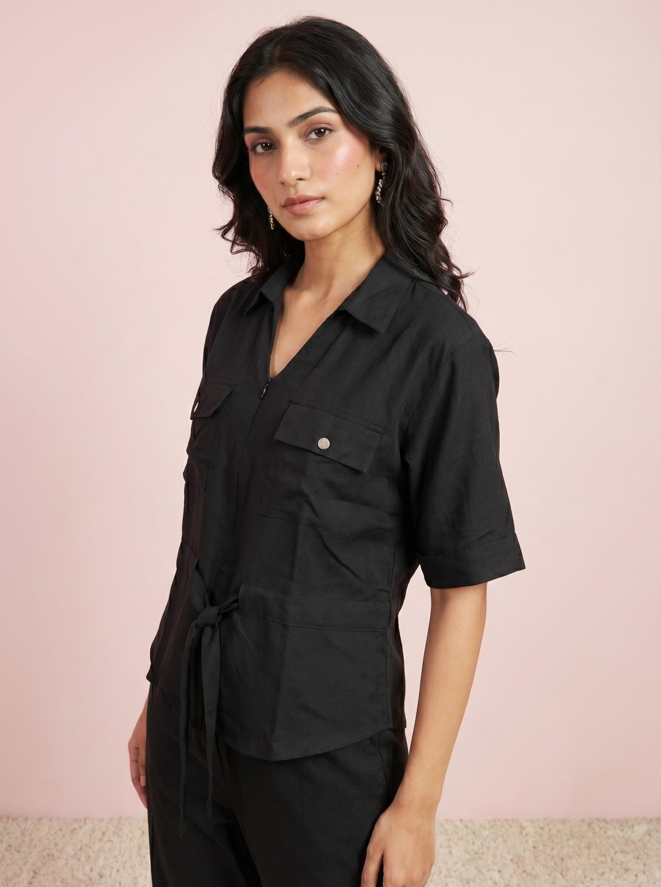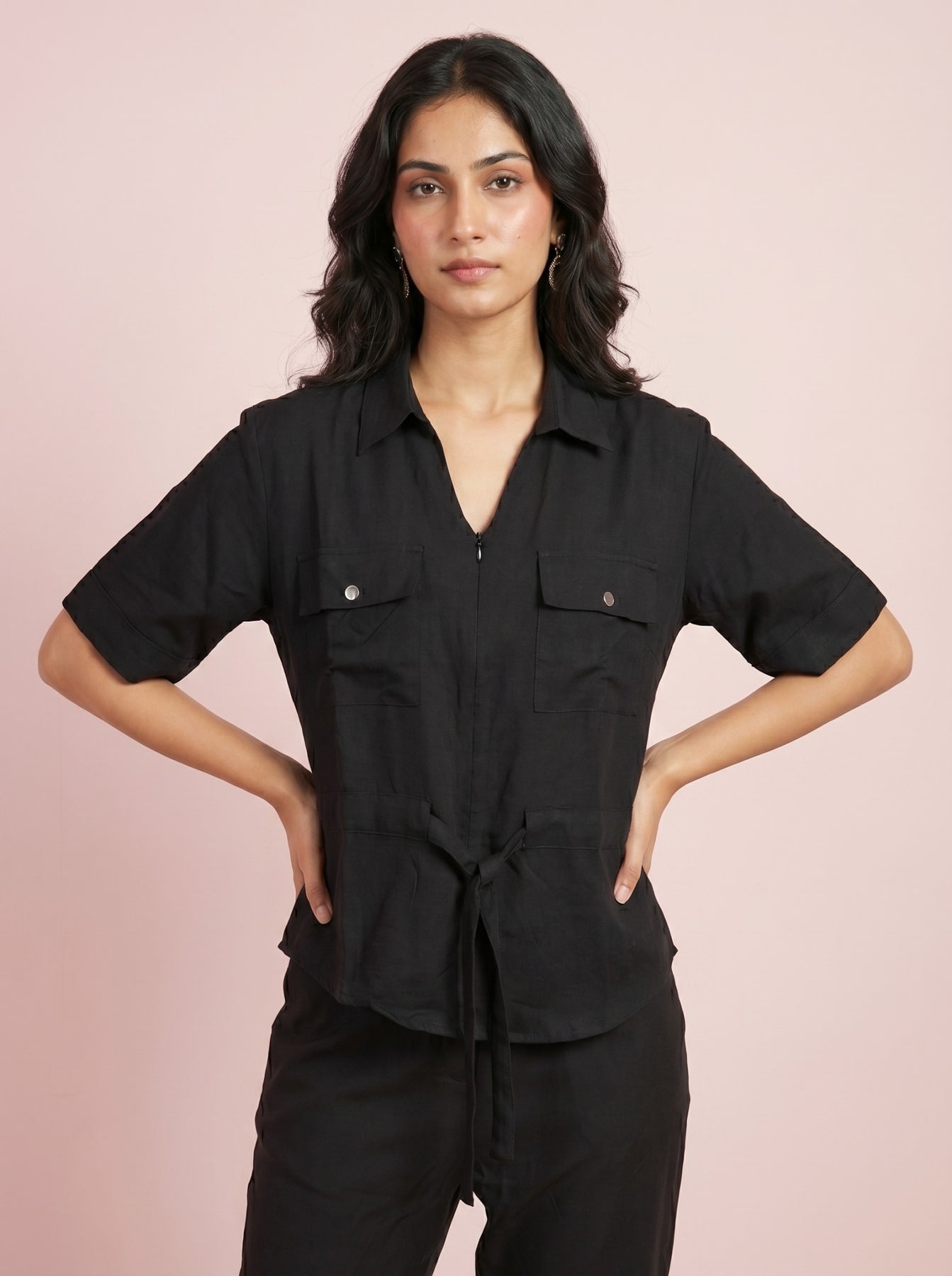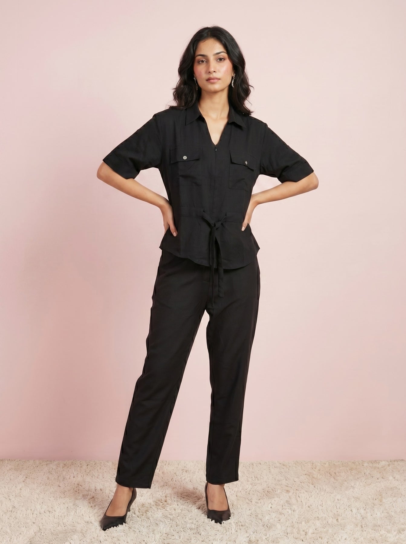 Overall, style it with sneakers for a relaxed and trendy look. This black cotton co-ord set is ideal for women who want comfort with modern everyday style.