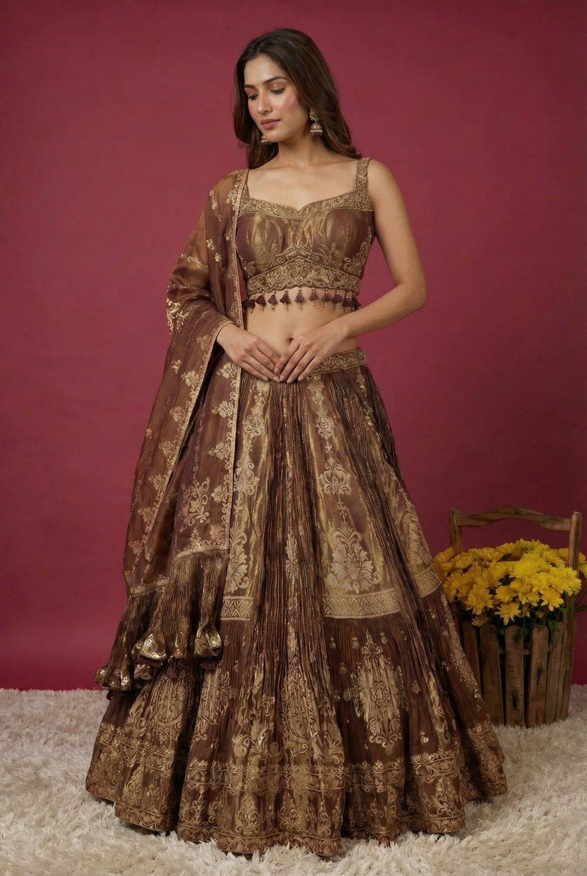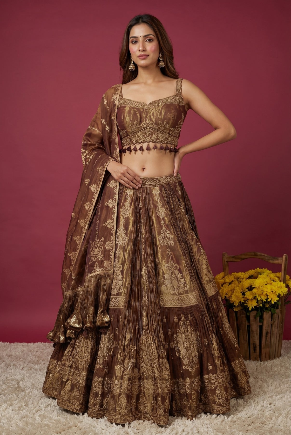Brown Crepe Festive Lehenga Set