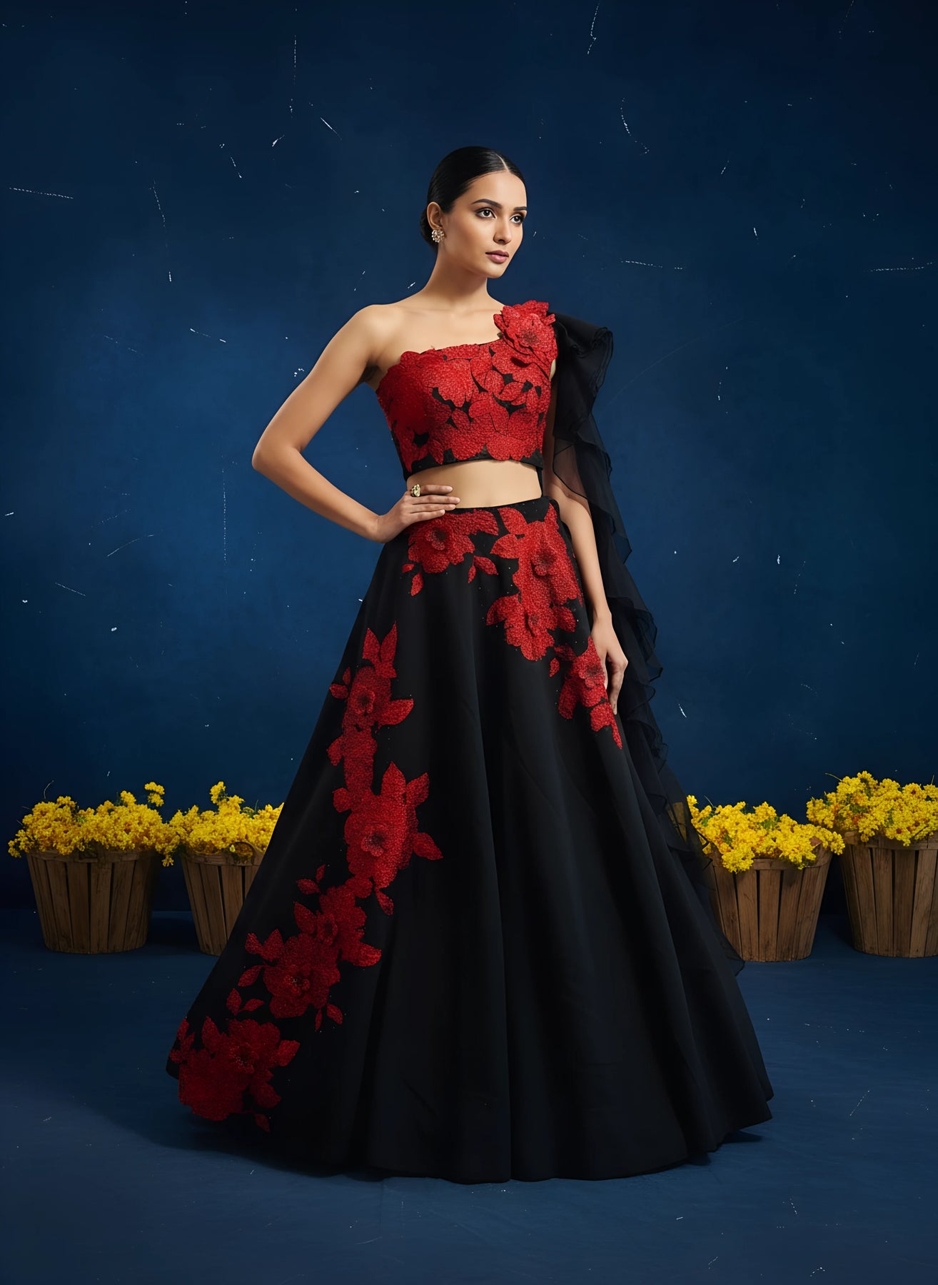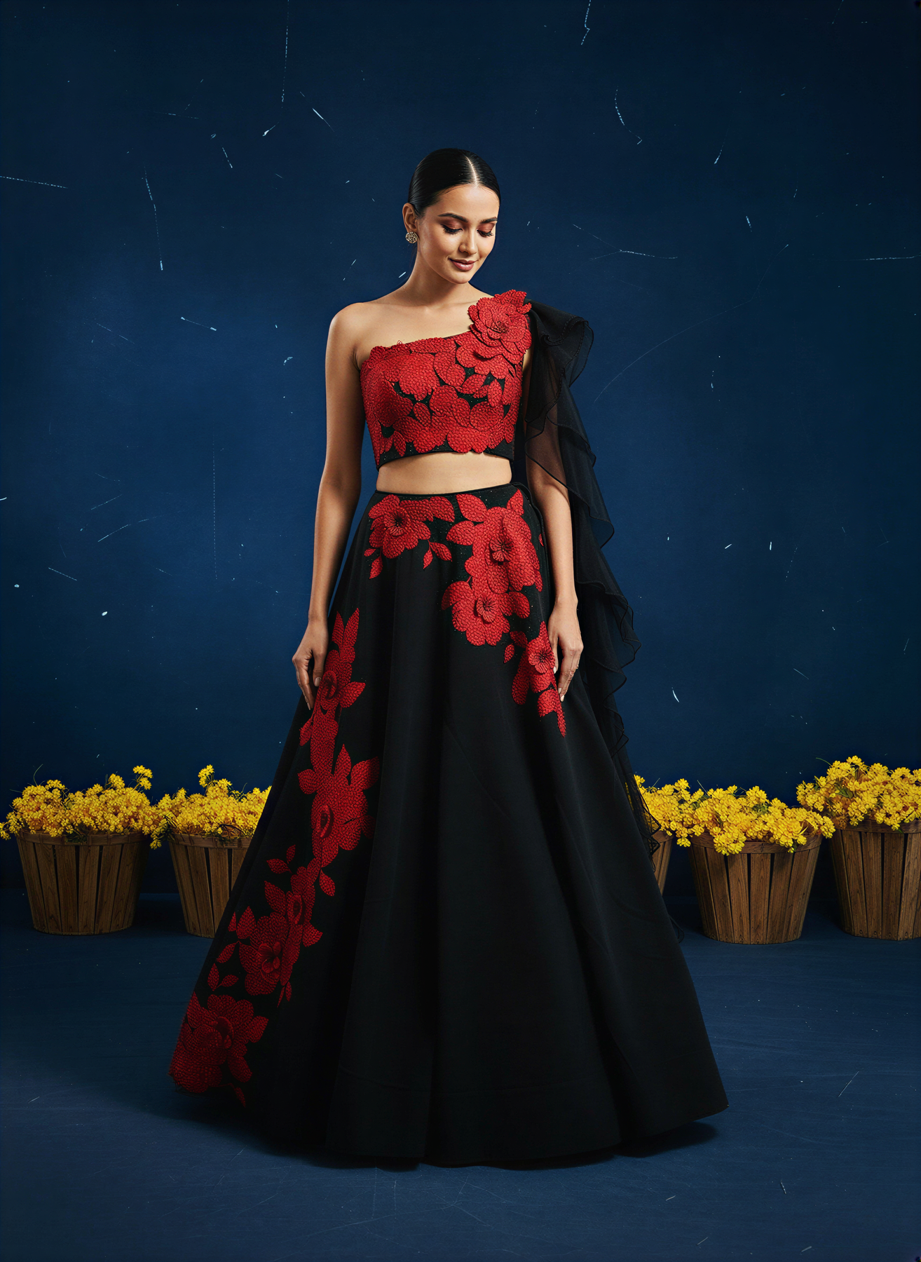 • Get ready to turn heads and make a statement at your next semi-formal event with this elegant, versatile lehenga set!