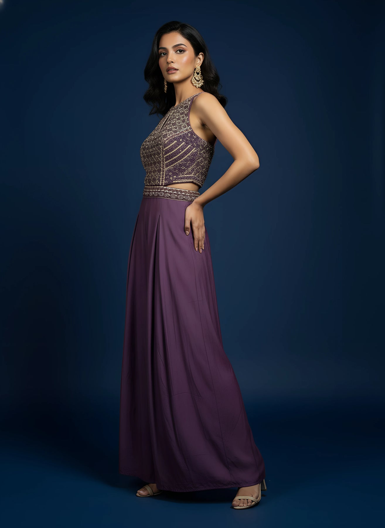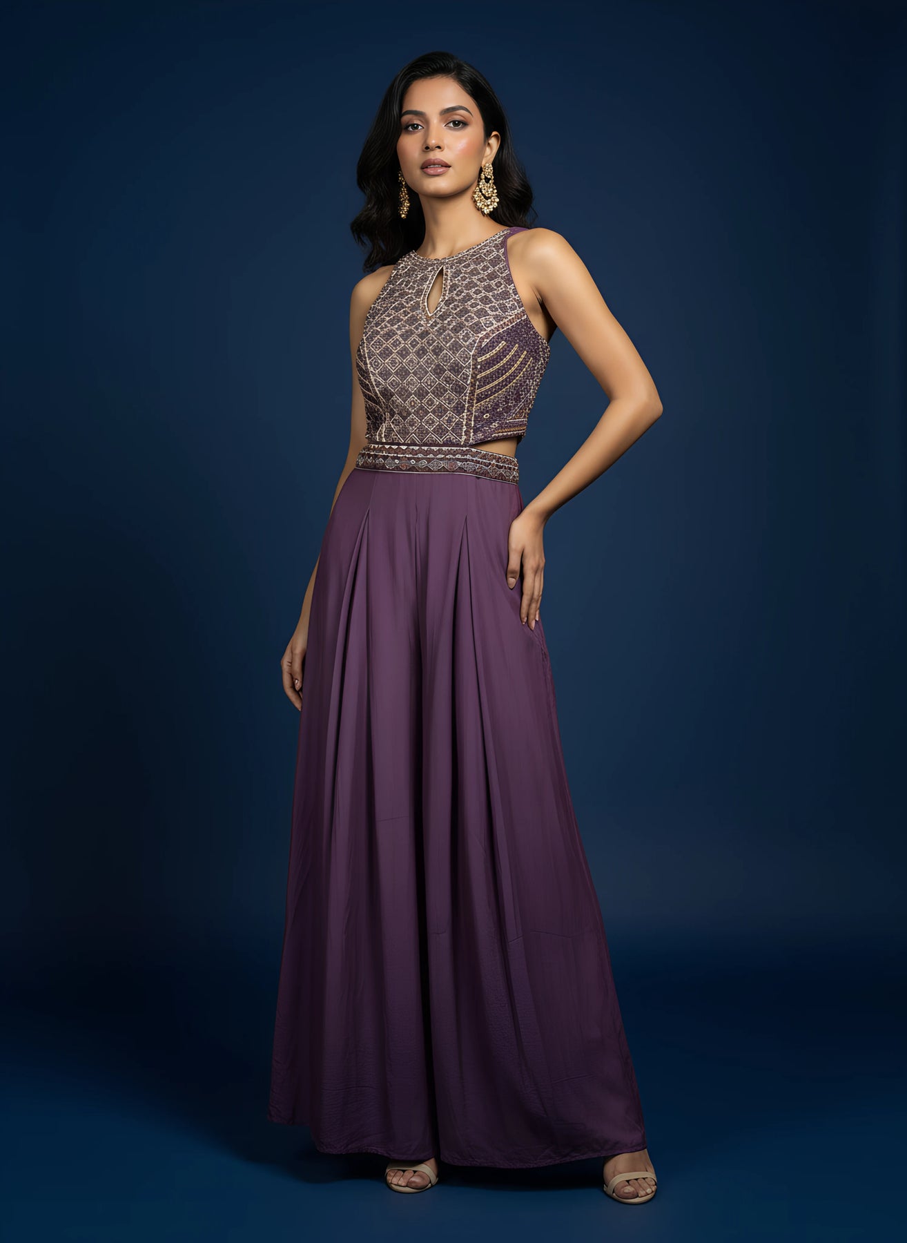 Purple Designer Embroidered Jumpsuit