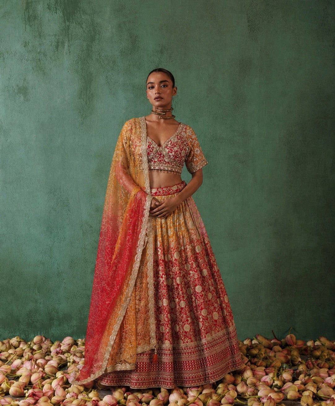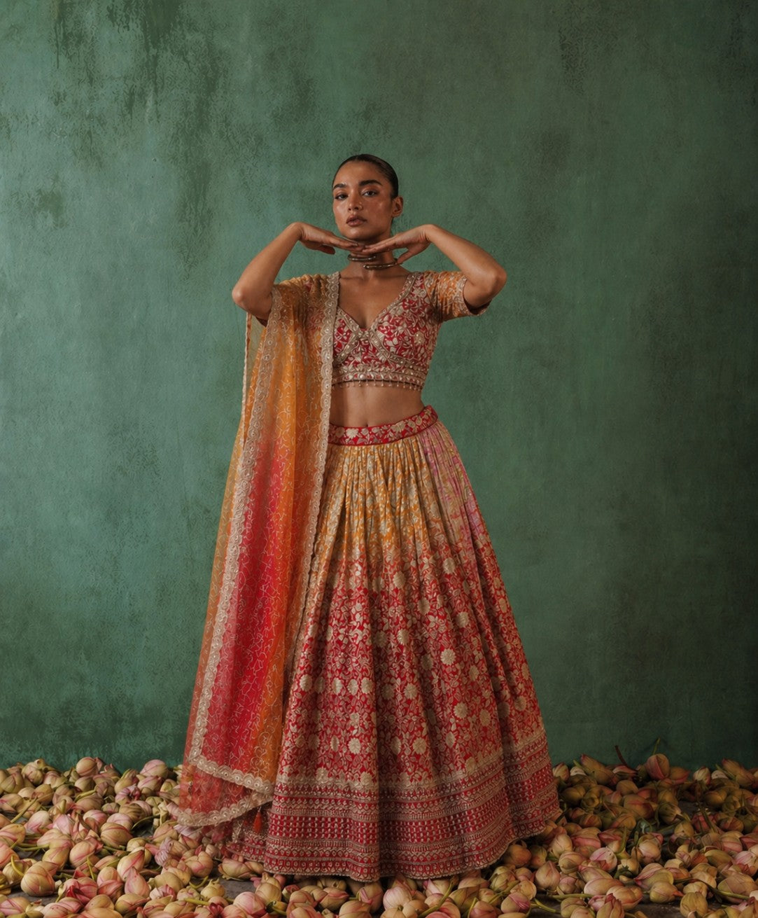 • Reception lehengas — contemporary cuts, silk and chiffon with modern embellishments