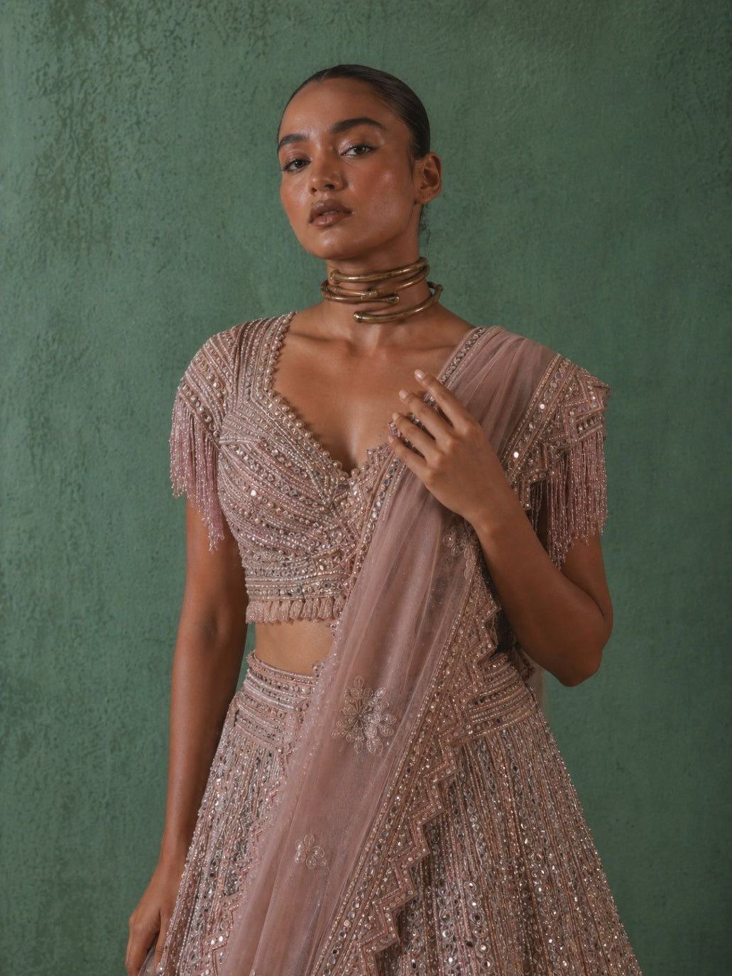 • Bridal lehengas — heavily embroidered, luxurious fabrics, built for your biggest day