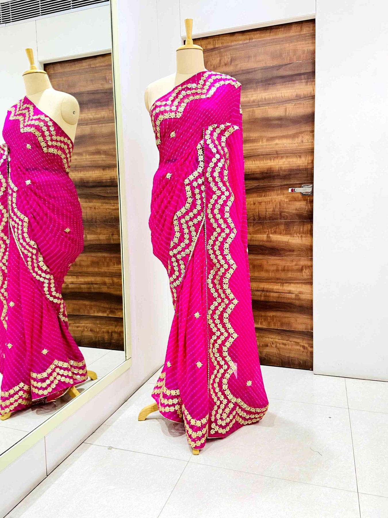 Dark Pink Georgette Mothra Leheriya Saree