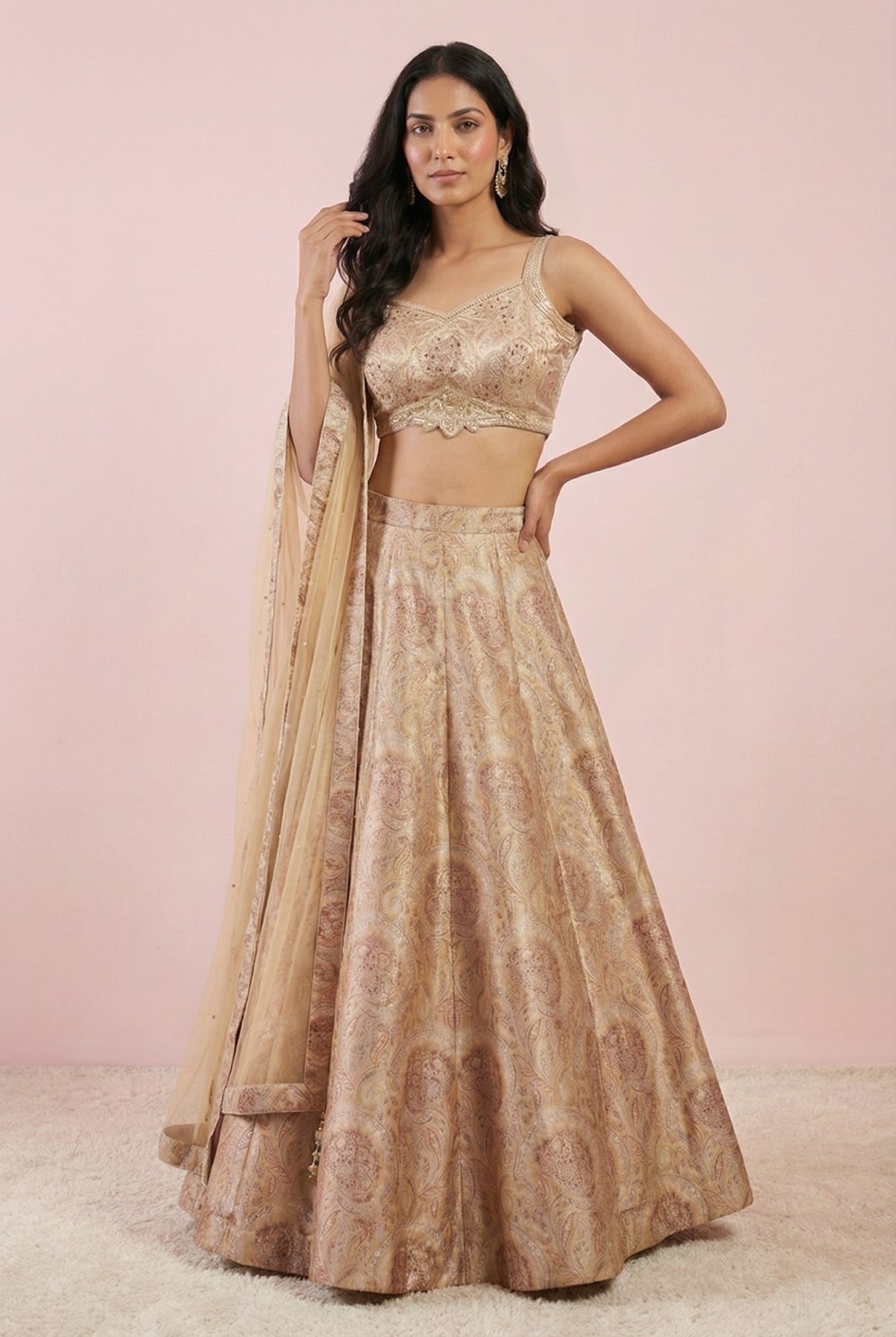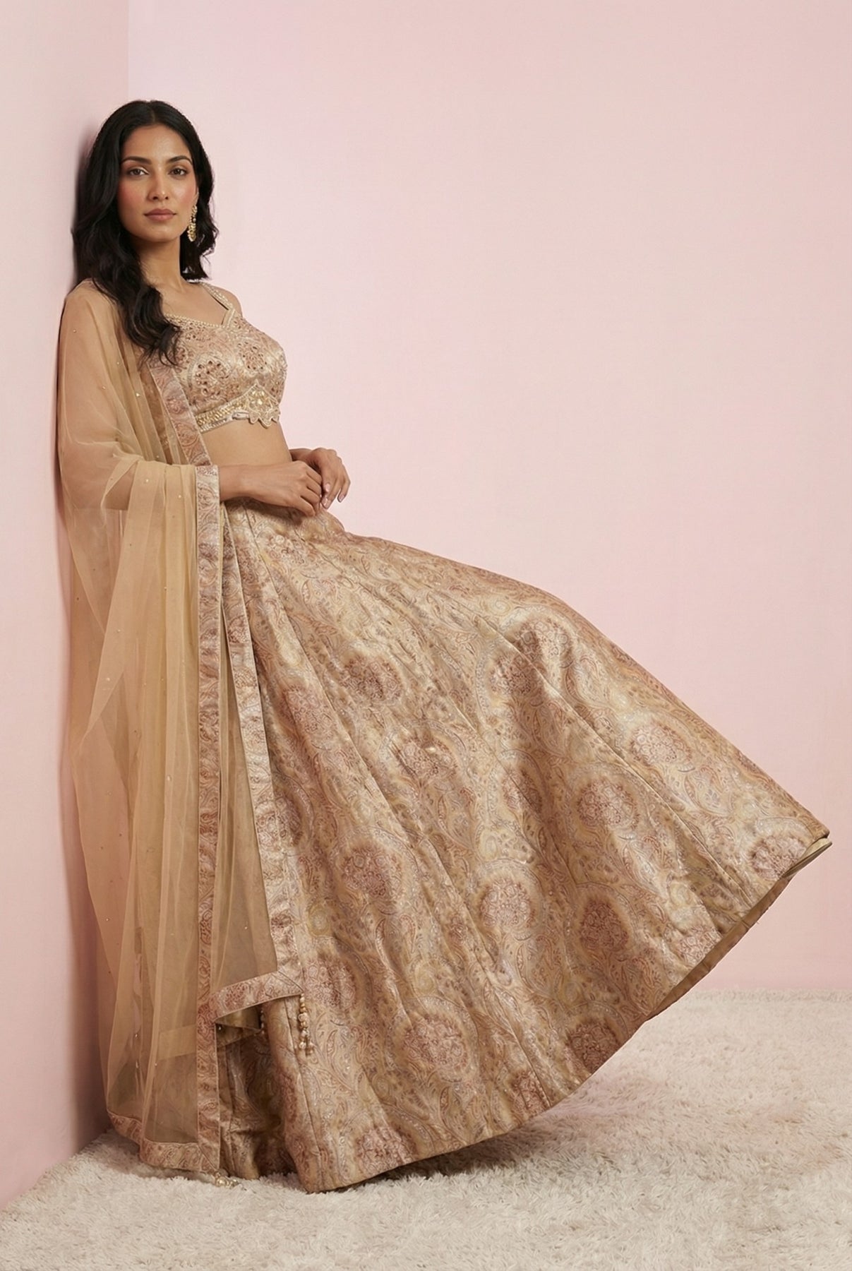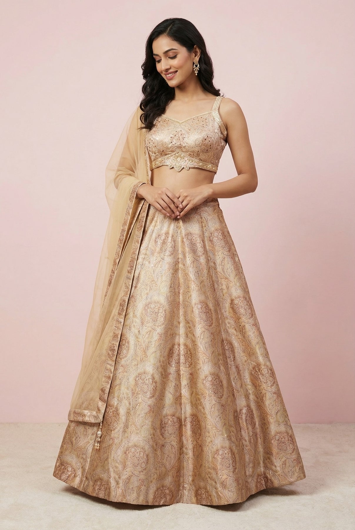 • Light Brown Digital Printed Silk Lehenga