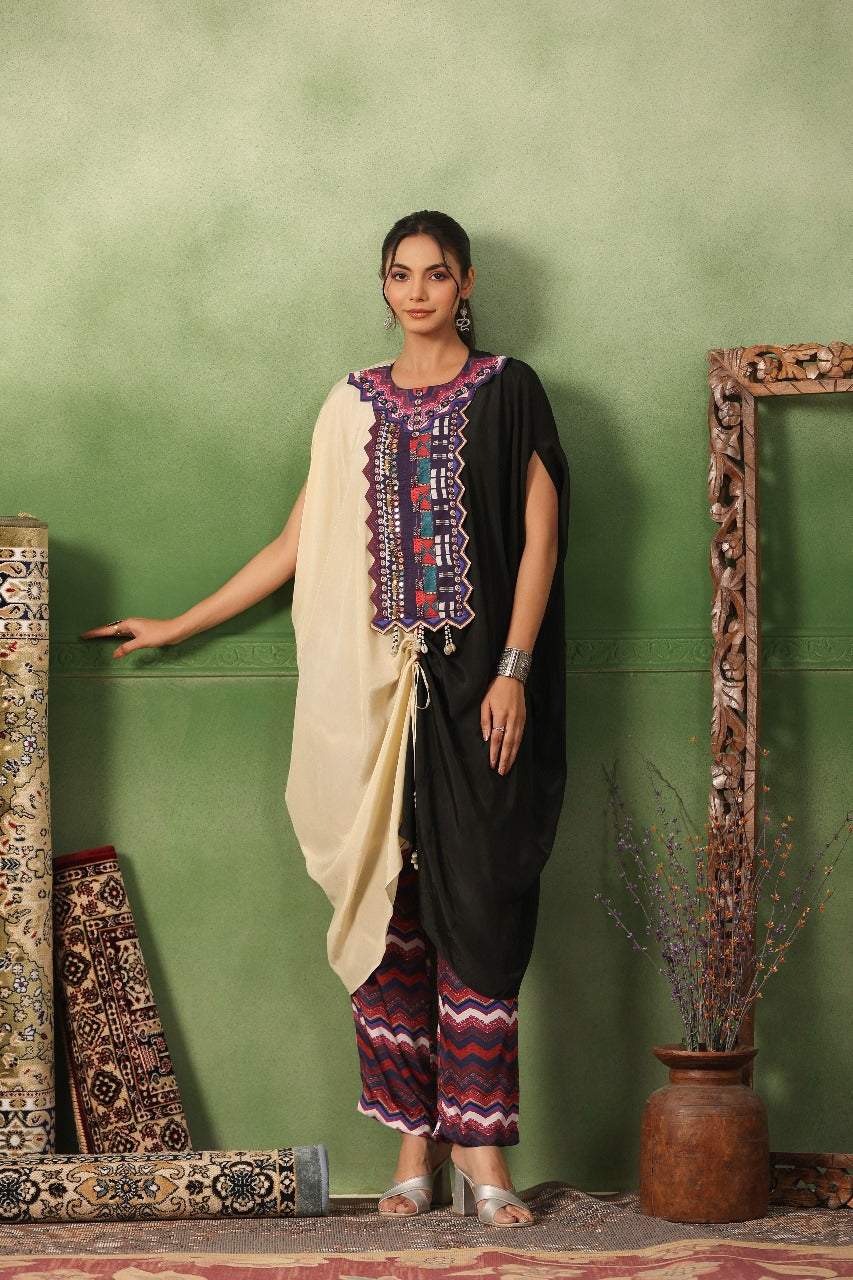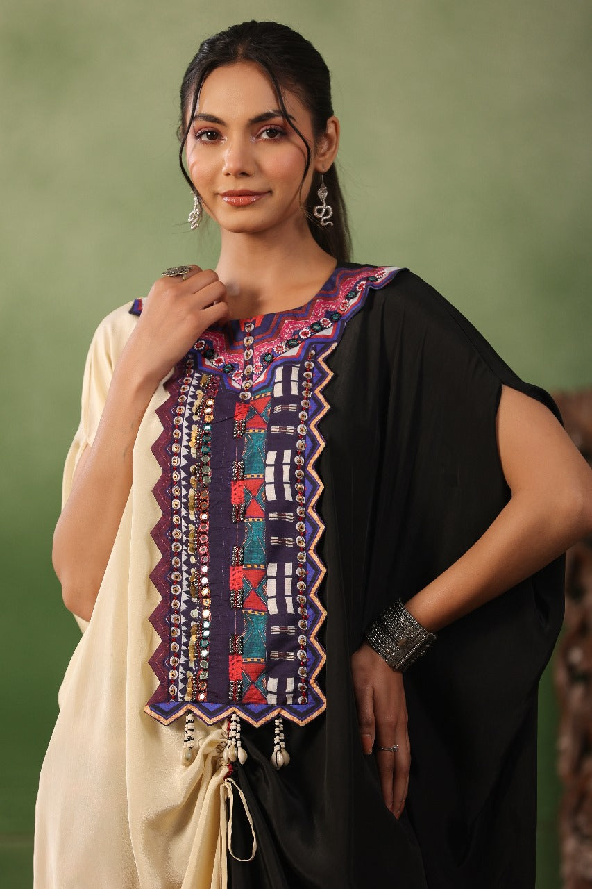 Perfect for weddings, festive gatherings, or special events, this kaftan set blends modern chic with timeless charm. The black and off-white combination enhances its versatility, making it a must-have for your wardrobe.