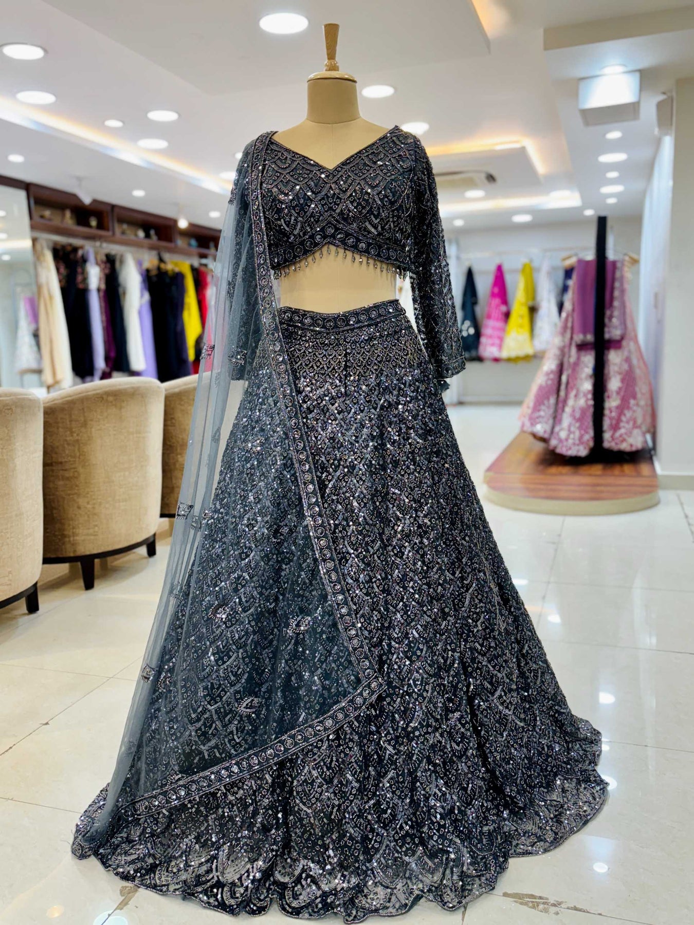 Get ready to turn heads and make a statement at your next semi-formal event with this elegant, versatile lehenga set!