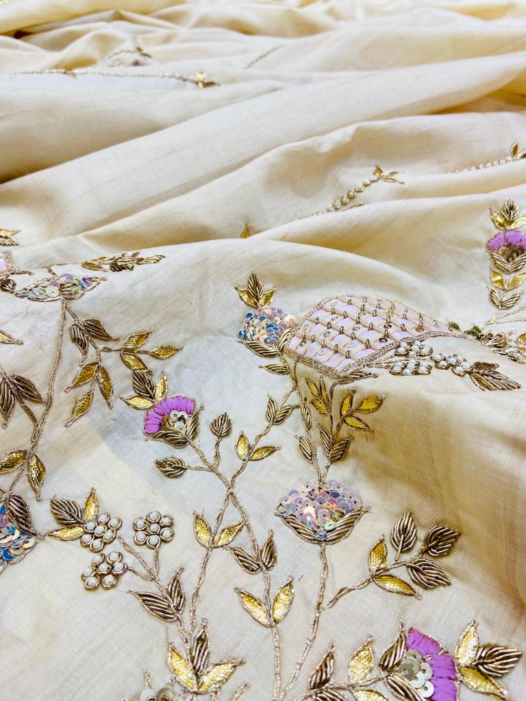 Beige Pure Silk Designer Saree