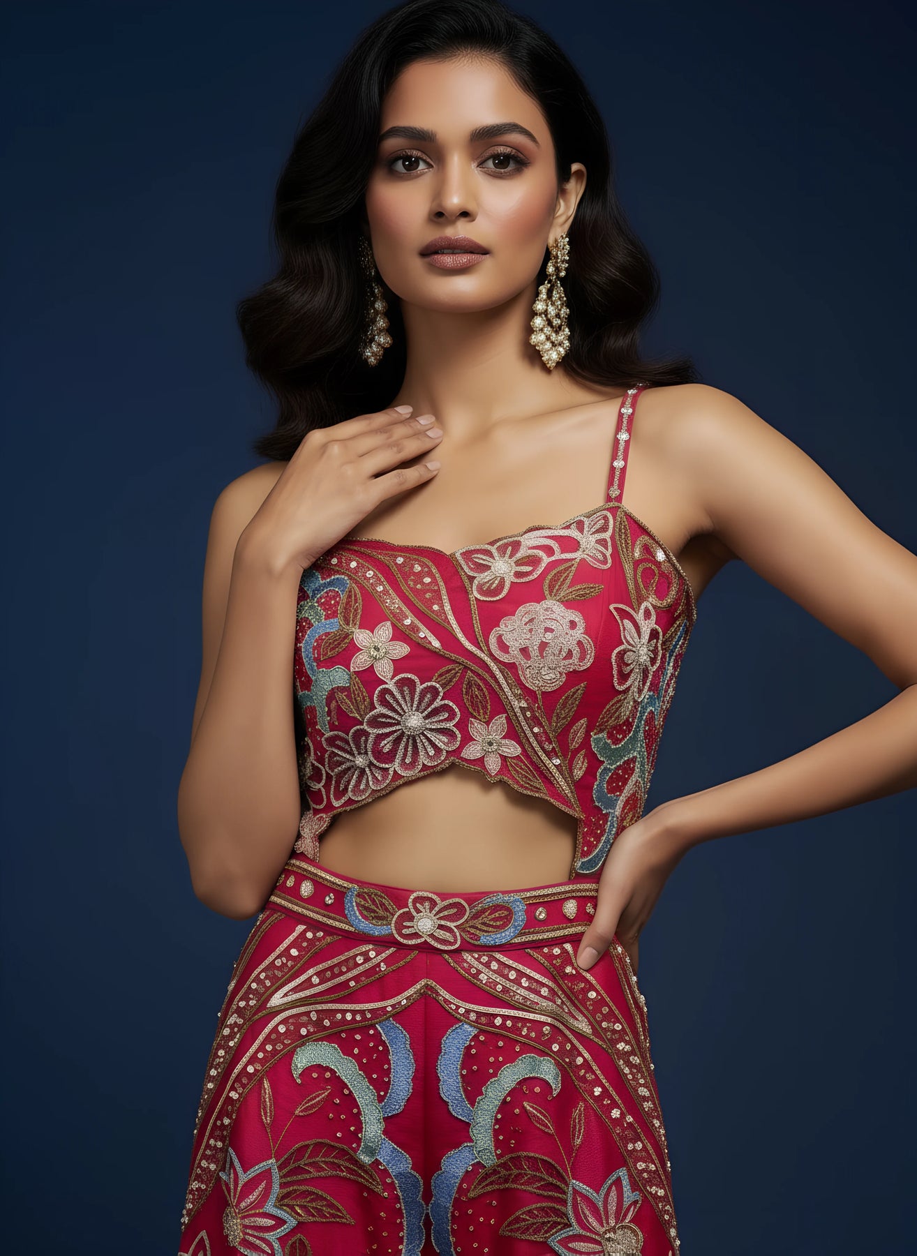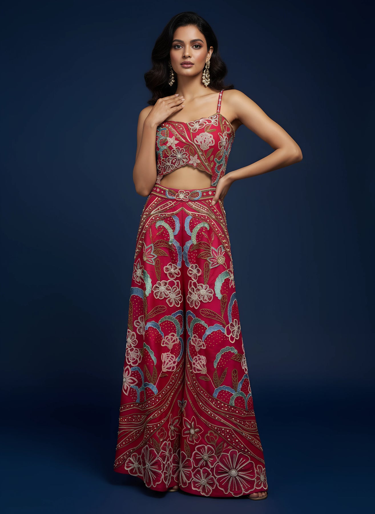 • Dark Pink Designer 3D Embroidered Jumpsuit