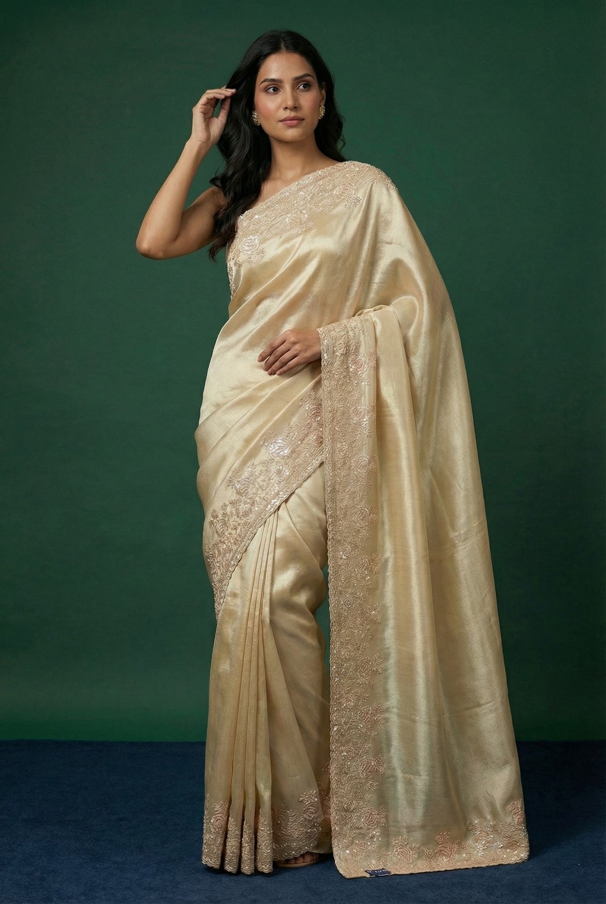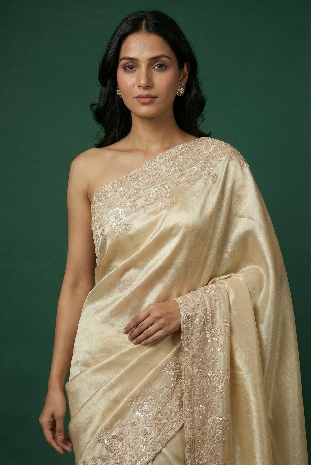 • Ivory Silk Festive Hand Work Saree